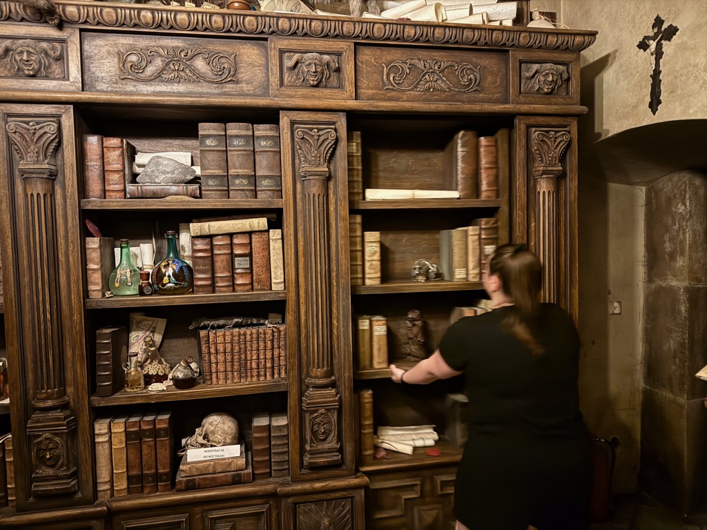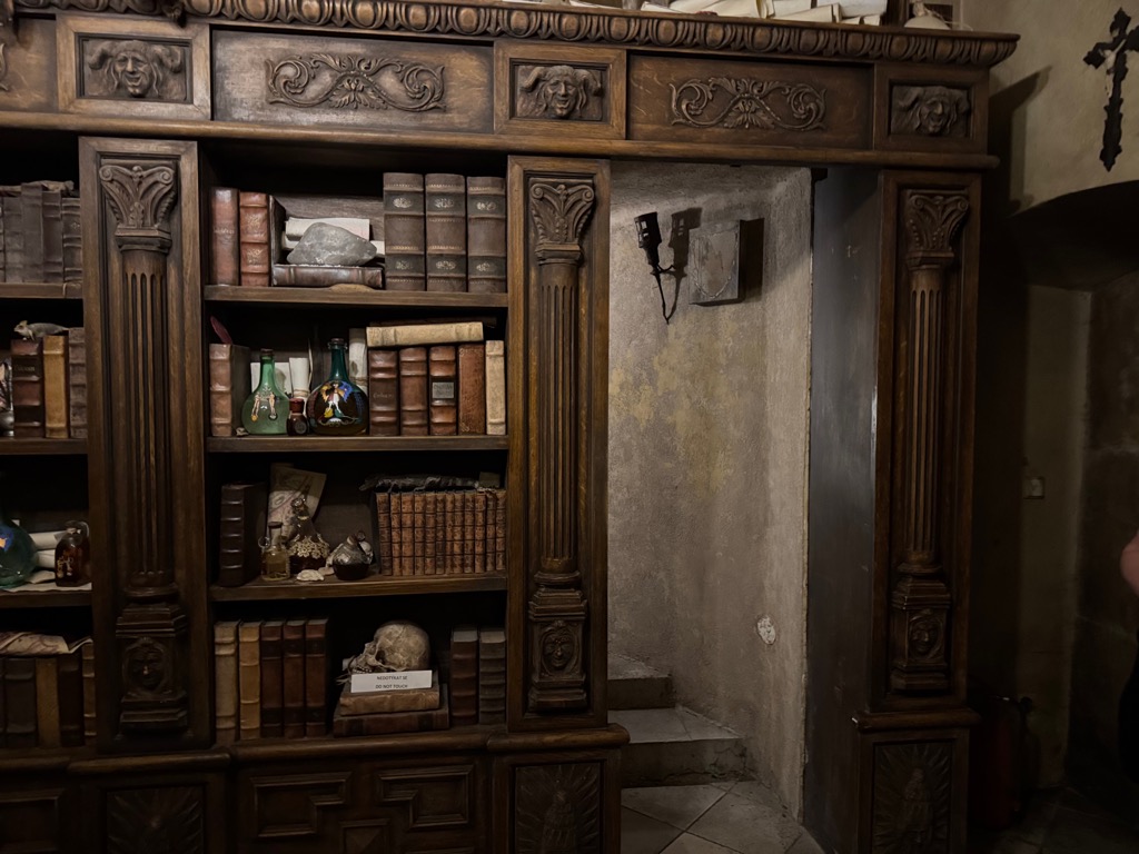 Speculum Alchemiæ bookcase being opened. |