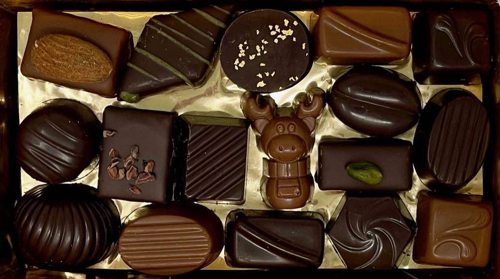 I recommend Bridgewater’s assorted chocolates, including the toffees, which you